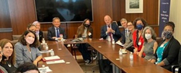 Hình 1 — Ts. Nguyễn Đình Thắng, Tổng Giám Đốc kiêm Chủ Tịch BPSOS, tại buổi họp định kỳ với Trợ Lý Ngoại Trưởng Julieta Valls Noyes (bên trái, đeo khẩu trang), Phòng Dân Số, Tị Nạn và Di Dân của Bộ Ngoại Giao Hoa Kỳ, ngày 7/9/2022