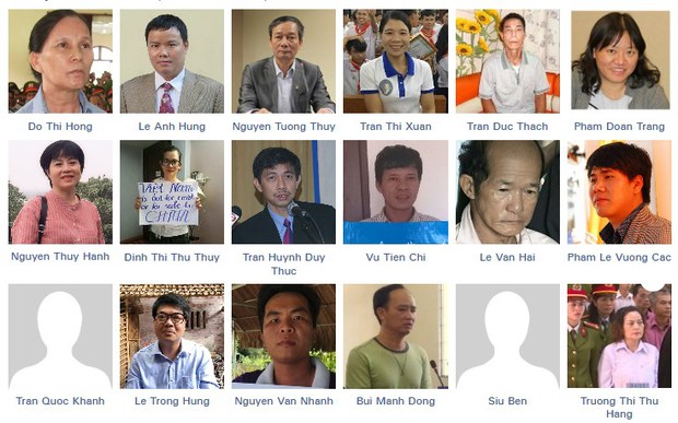 Theo Tổ chức Theo dõi Nhân quyền, hơn 150 tù nhân chính trị tại Việt Nam hiện đang bị giam giữ chỉ vì thực thi các quyền cơ bản của họ. [9] Các blogger và nhà hoạt động nhân quyền phải đối mặt với sự sách nhiễu, đe dọa, theo dõi và thẩm vấn của công an hàng ngày. Các nhà hoạt động phải đối mặt với thời gian dài bị giam giữ trước khi xét xử, không được tiếp cận với luật sư hoặc gia đình trong một nhà nước công an độc đảng không dung thứ bất cứ bất đồng chính kiến nào.