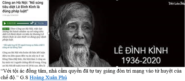 So với bản Giảng (Sơn La) hay Rạch Gốc (Cà Mau) thì Đồng Tâm (Hà Nội) chả là cái đinh gì sất cả. Bản thân ông Nguyễn Đình Kình cũng thế, cũng chả có thành tích gì đáng kể, chưa giúp được một đồng chí lãnh đạo nào vượt ngục, cũng chả chịu đòn thay cho bất cứ ai.