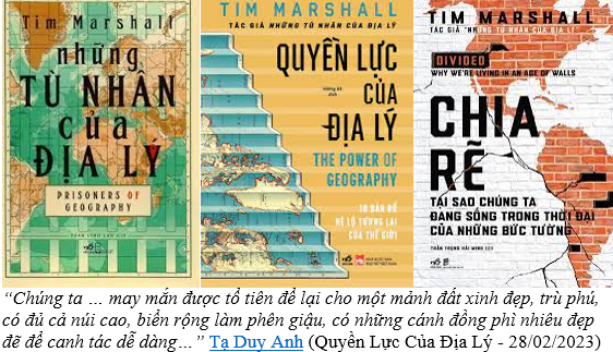 Nhận xét thượng dẫn khiến tôi nhớ đến một bình luận khác, của nhà văn Tạ Duy Anh, về một tác phẩm khác (Quyền Lực Của Địa Lý) của Tim Marsahll :
