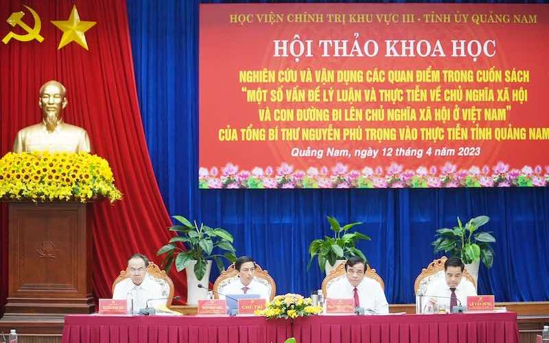 Sáng ngày 12-4-2023, tại thành phố Tam Kỳ, Ban Thường vụ Tỉnh ủy Quảng Nam phối hợp Học viện Chính trị khu vực III tổ chức hội thảo khoa học “Nghiên cứu và vận dụng các quan điểm trong cuốn sách “Một số vấn đề lý luận và thực tiễn về CNXH và con đường đi lên CNXH ở Việt Nam” của Tổng bí thư Nguyễn Phú Trọng vào thực tiễn tỉnh Quảng Nam”.