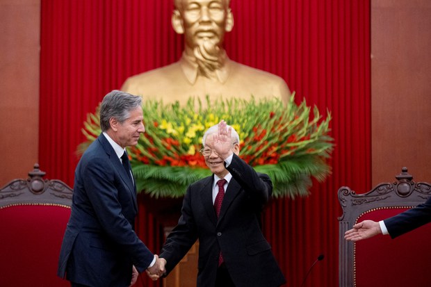 “Chuyến thăm của Ngoại trưởng Antony Blinken nhằm tiếp tục thúc đẩy, tăng cường hơn nữa quan hệ Việt Nam-Hoa Kỳ theo tinh thần Đối tác toàn diện 2013 và Tuyên bố tầm nhìn chung về quan hệ Việt Nam-Hoa Kỳ 2015, đồng thời triển khai kết quả cuộc điện đàm giữa Tổng Bí thư Nguyễn Phú Trọng và Tổng thống Hoa Kỳ Joe Biden (tháng 3/2023).