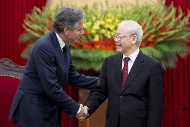 Trước chuyến thăm Hà Nội của ông Bliken, ngày 13/4/2023, Bộ Ngoại giao Mỹ đã công bố Thông báo “Quan hệ Hoa Kỳ – Việt Nam: Kỷ niệm 10 năm Quan hệ Đối tác Toàn diện và 28 Năm Quan hệ Ngoại giao” (The United States – Vietnam Relationship: Celebrating 10 Years of Comprehensive Partnership and 28 Years of Diplomatic Relations) (5).