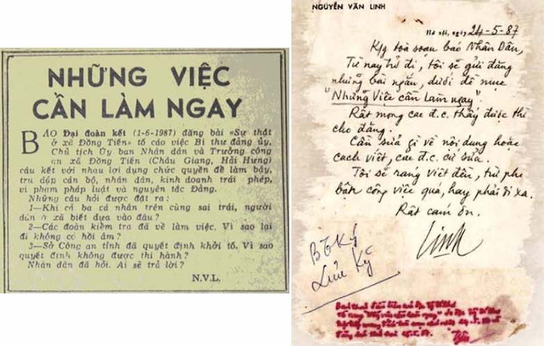 Ông Ngô Minh Tuấn, Tổng biên tập tạp chí Xây dựng Đảng, nhìn nhận, “Những bài báo trong chuyên mục “Những việc cần làm ngay” trên báo Nhân Dân đề cập hàng loạt tồn tại trong hệ thống chính trị, kinh tế – xã hội thời đó, chỉ ra vấn đề cấp bách liên quan tiến trình đổi mới, mở cửa và hội nhập”…