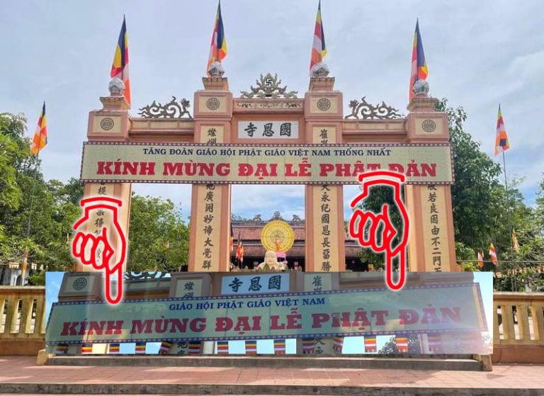 Hôm qua, trước khi Đại lễ diễn ra, bảng hiệu tổ đình Quốc Ân bị xịt sơn che lấp bảng hiệu, nội dung đầy đủ là Tăng Đoàn Giáo Hội Phật Giáo Việt Nam Thống Nhất thì bây giờ chỉ còn dòng chữ Giáo Hội Phật Giáo Việt Nam. Còn bảng hiệu ở chùa Phước Thành, nội dung ghi dòng chữ Tăng Đoàn Giáo Hội Phật Giáo Việt Nam Thống Nhất đã bị xóa sạch trơn.