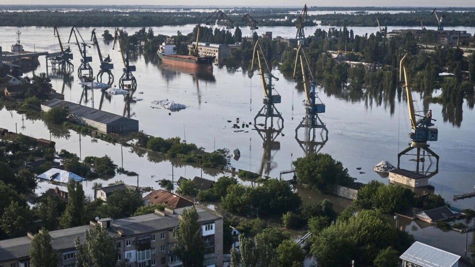 Hiện giờ, mực nước sông Dniepr đang dâng cao và tình trạng sẽ kéo dài thêm ít nhất 5 ngày nữa. Khu vực phía nam con sông bị thiệt hại nặng hơn cả. Đây là nơi quân Nga kiểm soát. Ngoài vấn đề nhân đạo, cộng đồng quốc tế báo động về một thảm họa đối với môi trường. Trên đài phát thanh RFI Pháp ngữ, chuyên gia quân sự Stéphane Audrand nêu bật một hậu quả sẽ kéo dài hàng chục năm :