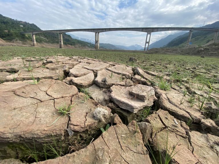 Lòng hồ thủy điện Sơn La. Cạn trơ đáy, cạn đã đến độ nứt toác ra rồi.