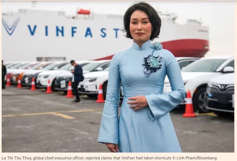 Giám đốc điều hành VinFast Lê Thị Thu Thủy nói với FT tại văn phòng ở Hà Nội: “Chúng tôi nghĩ rằng thị trường xe hơi điện đang rộng mở. Cả thế giới đang chuyển sang xe điện . . . chúng tôi không cạnh tranh để giành lấy thị phần đang bị thu hẹp.”