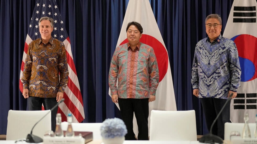 Ngoại trưởng Hoa Kỳ, Hàn Quốc, Nhật Bản đã họp khẩn về mối đe dọa từ Bắc Triều Tiên vào ngày 14/07/2023, tại Jakarta, Indonesia, bên lề các hội nghị thường niên của ASEAN. Trong tuyên bố chung, ba bên đã « lên án mạnh mẽ vụ thử một tên lửa liên lục địa ICBM » được Bình Nhưỡng tiến hành trong tuần này.