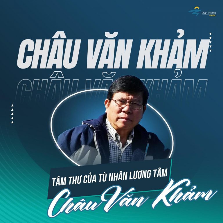 Tôi là Châu Văn Khảm, đảng viên đảng Việt Tân, một Tù Nhân Lương Tâm vừa mới trở lại xứ sở tự do Úc Châu vào ngày 11 tháng 7, 2023 sau 4 năm, 6 tháng bị nhà cầm quyền CSVN bắt giữ và giam cầm một cách phi pháp, với cáo buộc tội “khủng bố lật đổ chính quyền”. Xin được có đôi lời tâm tình cùng quý vị.