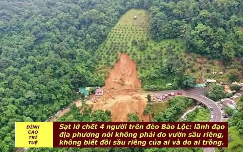 Đèo Bảo Lộc là một đoạn đường cực kỳ nguy hiểm, không chỉ bởi đèo dốc, gấp khúc, mà còn nằm ở khu vực có nguy cơ sạt lở cao do kết cấu đất bazan yếu, tơi xốp và lượng mưa lớn hàng năm. Chính vì vậy rất cần thiết phải bảo tồn rừng phòng hộ hoặc trồng rừng giữ đất, nhất là những mảnh rừng gần đường có lưu lượng giao thông cao. Thế nhưng nhà chức trách lại cho phép phá rừng trồng sầu riêng ngay trên khúc cua nguy hiểm này. Chẳng những vậy mà họ còn dám xây trạm cảnh sát giao thông ngay dưới khoảnh đồi bị phá mà không có tường chắn để bảo vệ công trình được xây bằng tiền thuế của dân. Liệu đây có phải cái gọi la “đỉnh cao trí tuệ” mà đảng ta luôn tự hào?