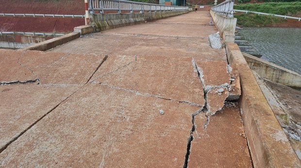 Hiện, phần đồi bên phải đập đang bị sụt lún với diện tích khoảng 10 ha là đất hoa màu của người dân. Ước tính có gần một triệu mét khối đất có nguy cơ bị sạt trượt. Thân đập cũng xuất hiện nhiều vết nứt lớn, 10-20 cm.