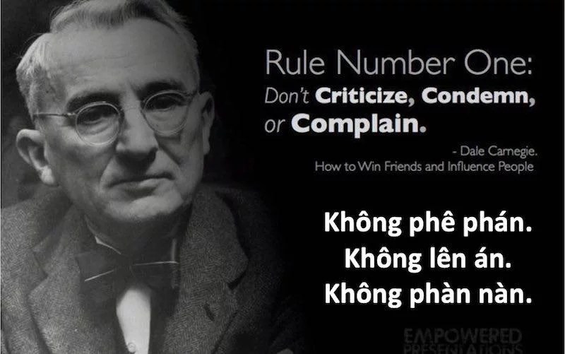 Dale Carnegie kết thúc chương sách bằng một lời khuyên: “Không phê phán, lên án hay phàn nàn” (Don’t criticize, condemn or complain).