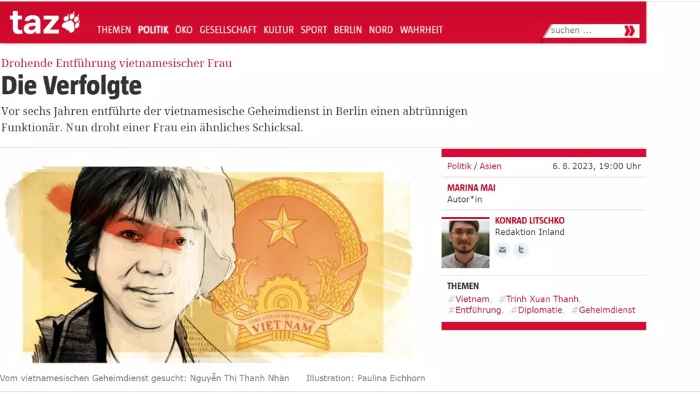 Sau đó, các tờ báo của Đức, của quốc tế lần lượt đưa tin sau khi họ hỏi chính quyền Đức. Họ được biết những thông tin rất nhạy cảm. Những thông tin này được đưa ra và đăng trên các tạp chí, cũng như là trên Đài truyền hình Slovakia RTVS tối 05/08, cũng như là trên báo TAZ của Đức vào ngày 06/08, trong đó có rất nhiều thông tin đặc biệt về việc bà Nguyễn Thị Thanh Nhàn đang ở Đức.