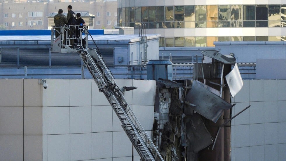 Theo thị trưởng Matxcơva,Sergueï Sobianine, lực lượng phòng không đã phá hủy được một drone của Ukraina. Mảnh vỡ drone đã rơi xuống khu vực Trung tâm triển lãm, làm sụp một phần tường bên ngoài, nhưng không gây thiệt hại vật chất nghiêm trọng. Theo AFP, Trung tâm triển lãm này nằm cách điện Kremlin khoảng 5km. Không phận gần sân bay Vnoukovo, phía tây Matxcơva phải tạm đóng trong một thời gian ngắn.