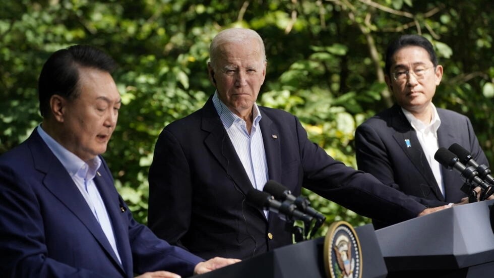 Sau cuộc hội kiến tại Trại David, Hoa Kỳ, lãnh đạo ba nước Mỹ, Nhật, Hàn đã có cuộc họp báo chung. Ba bên ra tuyên bố ‘‘Tinh thần Trại David’’. Lên án ‘‘các hành xử’’ của Trung Quốc ở Biển Đông là một trong các nội dung chính của tuyên bố chung Mỹ-Nhật-Hàn, hôm qua 18/08/2023.