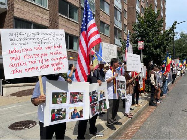 Khoảng hơn 100 người Khmer Krom đã tập trung trước cửa tòa đại sứ Việt Nam tại Washington DC vào chiều ngày 21/8 (giờ miền Đông Hoa Kỳ) để phản đối chính sách đàn áp người Khmer Krom của chính quyền Việt Nam và đòi trả tự do cho những tù nhân lương tâm là người Khmer Krom.