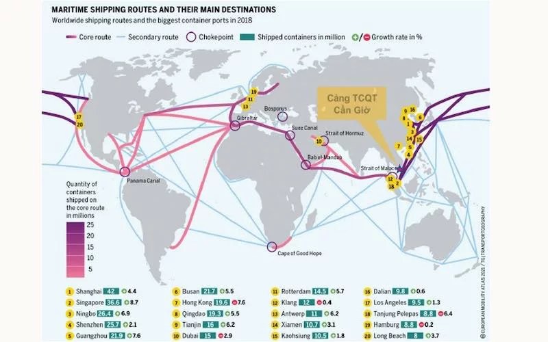 Theo số liệu thống kê của Cục Hàng hải Việt Nam, sản lượng hàng qua cảng biển thành phố Hồ Chí Minh năm 2022 là 733,18 triệu tấn, đạt tốc độ tăng trưởng bình quân 8,4%/năm, và cảng biển Bà Rịa – Vũng Tàu (khu vực Cái Mép Thị Vải) là 106,7 triệu tấn, đạt tốc độ tăng trưởng bình quân khoảng 15%/năm.