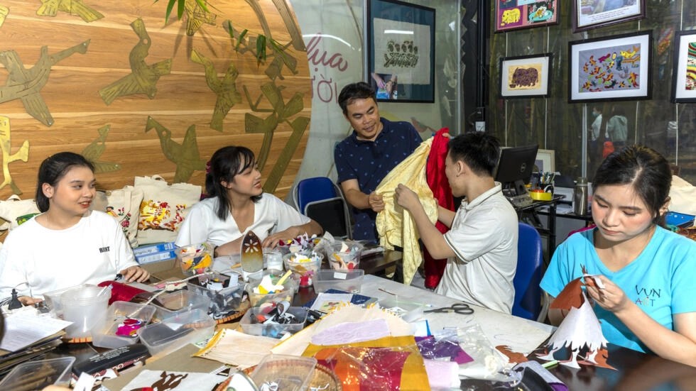 Tại làng lụa Vạn Phúc, Hà Đông, bên cạnh những cửa hàng lụa, sản phẩm của làng nghề truyền thống, không khó để thấy Hợp tác xã có tên khá lạ – « Vụn Art », với những sản phẩm ứng dụng do người khuyết tật làm từ vải, xinh xắn, với những hình trang trí chuyển thể từ tranh dân gian và được ghép dán từ vải vụn.
