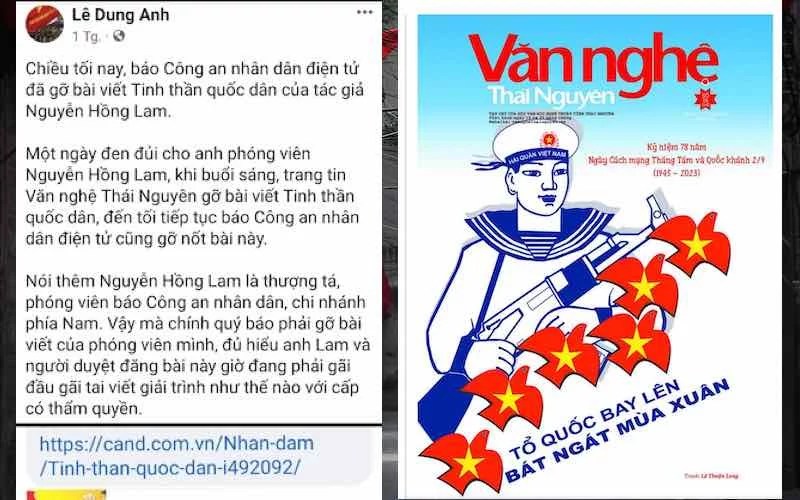 Bài viết nhân kỷ niệm 78 năm Quốc khánh 2/9 với tựa đề “Tinh Thần Quốc Dân” của Thượng tá công an và là nhà báo Nguyễn Hồng Lam đã bị gỡ bỏ trên báo Công an nhân dân và tạp chí Văn nghệ Thái Nguyên số 16.