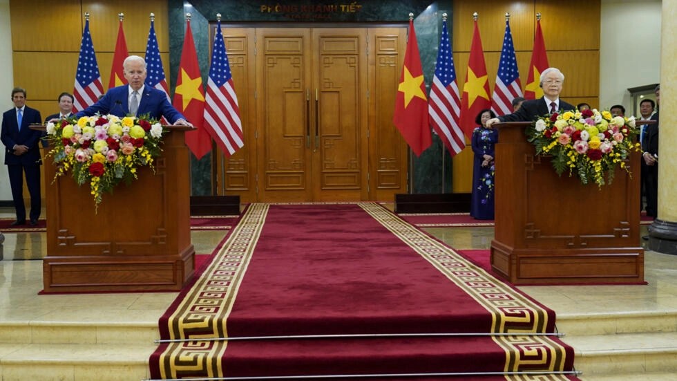Ngay khi tới thăm Việt Nam, tổng thống Mỹ Joe Biden đã hội đàm với tổng bí thư đảng Cộng Sản Việt Nam Nguyễn Phú Trọng vào hôm qua 10/09/2023 và hai bên quyết định nâng cấp quan hệ song phương lên mức « Đối tác chiến lược toàn diện » – theo xếp hạng quan hệ trong chính sách đối ngoại của Việt Nam.