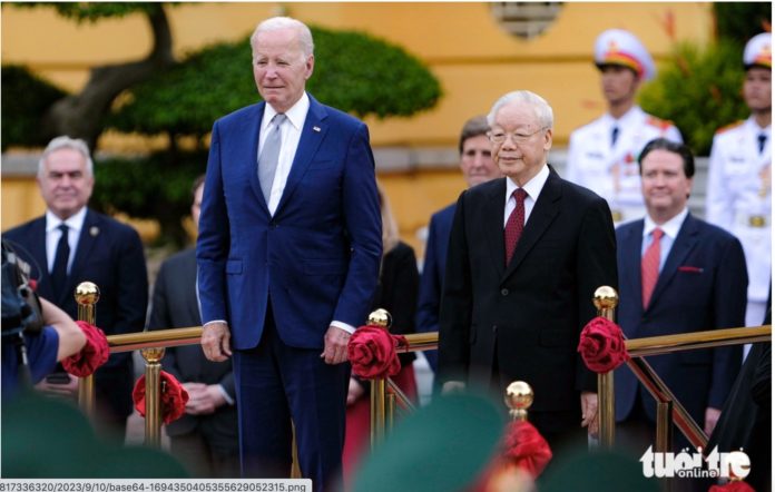 Các nhà lý luận, những người đưa ra “nguy cơ chệch hướng”, “nguy cơ diễn biến hòa bình”, hẳn không thể hình dung được, chiều 10-9-2023, ông Nguyễn Phú Trọng – một nhà lý luận, một TBT của Đảng – bắt tay Tổng thống Mỹ và coi nhau là “Đối tác Chiến lược Toàn diện vì hòa bình, hợp tác và phát triển bền vững”.