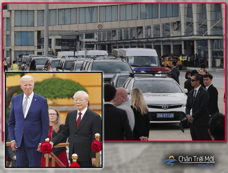 Cái chuyện khó hiểu đập vào mắt phái đoàn Mỹ và khán giả truyền hình khắp thế giới chính là chuyện chiếc xe dẫn đường của cảnh sát Việt Nam, khi đưa phái đoàn tổng thống ra phi trường Nội Bài đã mang biển số 011.09. Con số này đã gợi lại biến cố đau thương của nước Mỹ xảy ra vào ngày 11 tháng 9 năm 2001 (September 11, 2001. Hay còn gọi là thảm kịch 9/11). Không hiểu khi cho chiếc xe dẫn đường mang biển số oái oăm này, ông Trọng muốn gửi tín hiệu gì đây? Ông muốn chia buồn với nước Mỹ nhân ngày tổng thống Joe Biden rời khỏi VN đúng vào ngày 9/11 (theo cách viết ngược của người Mỹ) hay ông muốn cho người đàn anh lớn phương Bắc vui lòng khi thấy rằng: Ngay cả khi giao tiếp với cường quốc số một thế giới, ông vẫn có cách để chọc gậy vào nỗi đau khôn nguôi của đế quốc Mỹ.