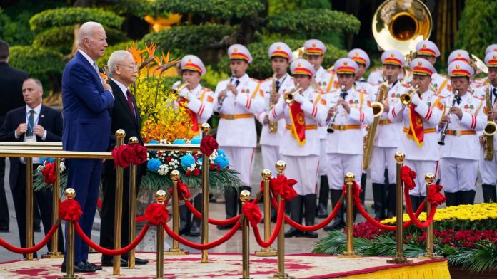 Điều khá trùng hợp là Tổng thống Biden đặt chân đến Hà Nội bắt tay với đảng trưởng Trọng thì nửa thế kỷ trước, năm 1972, Tổng thống Nixon đến Bắc Kinh bắt tay với Mao. Từ đó TQ được tư bản vỗ béo từ con rồng đói thành quái thú. Vậy bao nhiêu năm nữa VN sẽ thành rồng con hay kỳ đà?