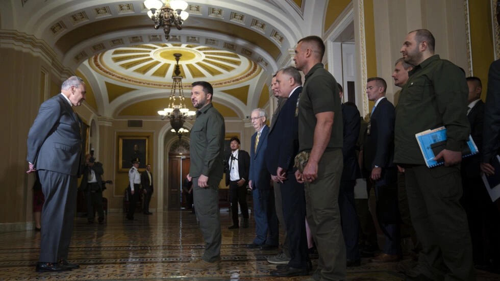 Trước khi đến Nhà Trắng, tổng thống Ukraina cũng đã tiếp xúc với giới lãnh đạo quân sự Mỹ tại Lầu Năm Góc, và nhất là ghé điện Capitol, nơi đặt trụ sở của Thượng Viện và Hạ Viện Mỹ. Trái với bầu không khí cách nay gần một năm, lần này ông Zelensky được tiếp đón kém nồng nhiệt hơn, đặc biệt là từ phía một số nghị sĩ đảng Cộng Hòa chủ trương đình chỉ ngay lập tức các khoản viện trợ cho Ukraina.