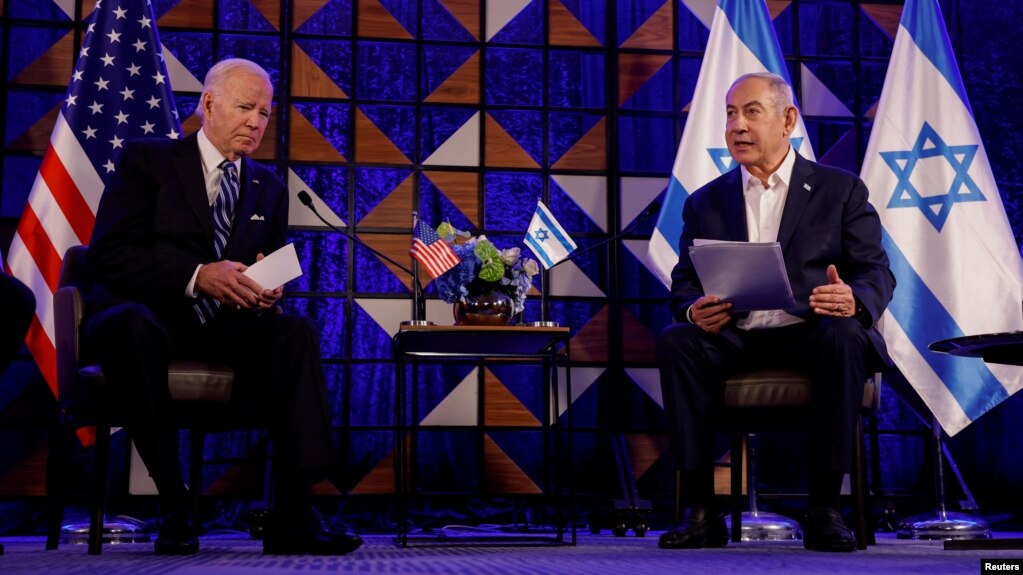 “Các bạn là một nhà nước Do Thái, nhưng các bạn cũng là một đất nước dân chủ,” ông Biden nói sau khi gặp các nhà lãnh đạo Israel. “Giống như Hoa Kỳ, bạn không sống theo luật lệ của những kẻ khủng bố. Bạn sống theo pháp trị … Các bạn không thể từ bỏ những gì định hình bản sắc của các bạn.”