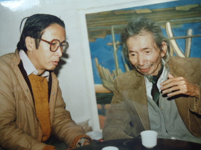 Từ phần buồng phía sau chiếc tủ sách, Văn Cao bước ra. Trông ông khỏe mạnh, bước đi nhanh nhẹn hơn hồi tôi gặp ông năm trước. Cái bắt tay của ông cũng có lực nắm mạnh hơn, bàn tay ông cũng nóng ấm hơn. Ông rót cho tôi li rượu. Căn phòng như ấm hẳn lên bởi mùi rượu thơm nồng.