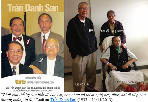 Với ít nhiều chủ quan, tôi tin rằng không ít quí vị luật sư của thế hệ đến sau (Đặng Đình Bách, Nguyễn Văn Ðài, Lê Công Ðịnh, Võ An Đôn, Lê Trần Luật, Lê Thị Công Nhân, Lê Quốc Quân, Nguyễn Bắc Truyển …) đều đã được thừa hưởng cái “dũng khí” từ những người đi trước như Nguyễn Mạnh Tường, Trần Danh San…