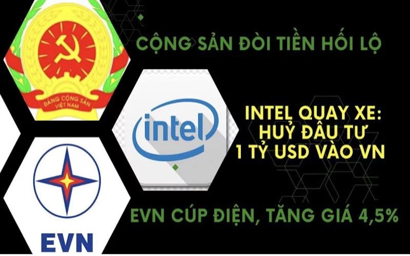 Thêm một động thái nguy hiểm nữa là EVN vừa thông báo tăng giá điện lên 4,5% ngay sau khi có tin Intel dừng đầu tư thêm 1 tỷ đô la vào Việt Nam. Giá điện tăng cao nhưng nguồn điện vẫn bất ổn càng khiến các tập đoàn quốc tế e dè khi có dự tính đầu tư vào Việt Nam.