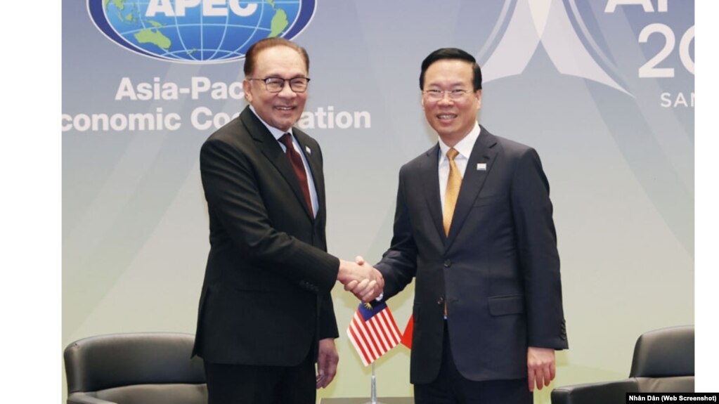 Chủ tịch nước Việt Nam Võ Văn Thưởng và Thủ tướng Malaysia Datuk Seri Anwar Ibrahim vừa có cuộc gặp bên lề hội nghị thượng đỉnh APEC ở Mỹ và nhất trí tăng cường hợp tác để giải quyết vấn đề đánh bắt trái phép ở vùng biển Malaysia, truyền thông Malaysia đưa tin hôm 17/11.