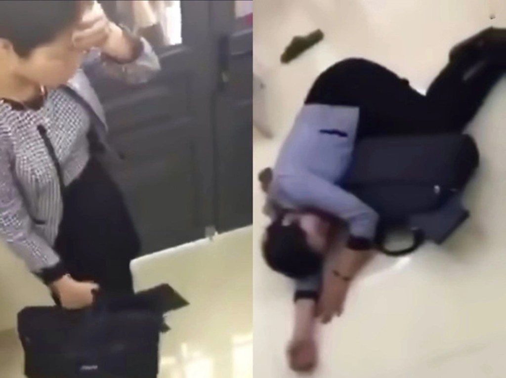 Trong cảnh hỗn loạn, nhiều chiếc dép được ném liên tục vào người cô giáo. Khi giáo viên cầm dép lên hỏi ai đã ném cô thì không ai trả lời. Sau đó, một chiếc dép ném trúng trán khiến cô choáng váng vài giây rồi lăn ra ngất xỉu.