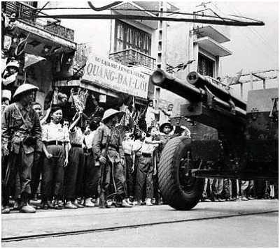 “Rừng cờ, rừng người, một rừng cánh tay giơ lên. Thật khó diễn tả cho hết những gì người ta nhìn thấy. Trong rừng người tiến vào thành phố, thật khó để biết ai là sĩ quan chỉ huy. Chẳng ai có thể nhận ra những đồng chí như Bùi Quang Tạo, Trần Đăng Ninh, Hoàng Văn Thái, Võ Nguyên Giáp, Lê Liêm. Người ta nhốn nhác tìm bóng dáng ông Giáp hay ông Hồ nhưng không thấy. Vài ngày sau, qua báo chí, người dân Hà Nội được biết các ông ấy đã về tới Hà Nội, nhưng ở đâu thì không ai hay.”