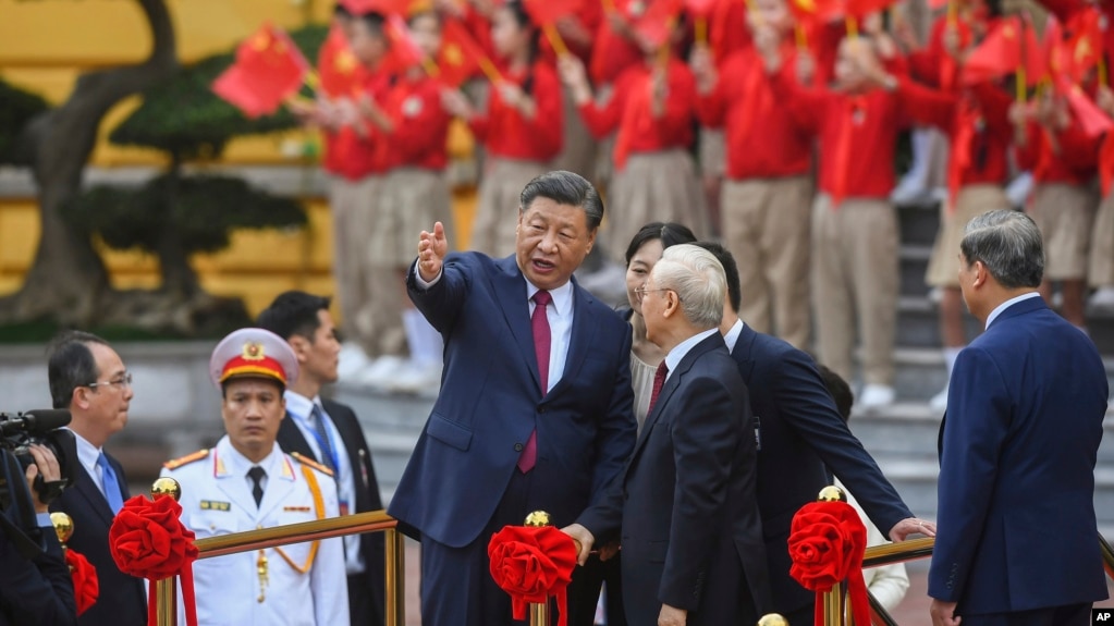 Câu chuyện ‘bị ẩn dấu’ tiếp theo là thỏa thuận Việt Nam và Trung Quốc từ nay chỉ chia sẻ… ‘tương lai’, chứ không chia sẻ ‘vận mệnh chung’ nữa! Có những lý giải khác nhau nhưng nhìn tổng quát, đây chỉ là thay đổi cách cách công bố ra ngoài cho dư luận và dân chúng. Nếu so Tuyên bố chung 2022 lúc ông Trọng sang Bắc Kinh với Tuyên bố chung 2023 vừa rồi thì còn một số điểm khác biệt đáng chú ý nữa. Tuyên bố chung 2022 không có các yếu tố ‘tương lai’ hay ‘vận mệnh’ gì cả. Những yếu tố để xác lập ‘định hướng quan hệ’ trong Tuyên bố năm 2022 chỉ là: Phát triển quan hệ giữa các nước cần tuân theo Hiến chương Liên hợp quốc, luật pháp quốc tế và chuẩn mực cơ bản của quan hệ quốc tế, hợp tác cùng thắng, tôn trọng chủ quyền và toàn vẹn lãnh thổ của nhau, kiên trì giải quyết bất đồng thông qua biện pháp hòa bình (4). Như vậy, phải thừa nhận một thực tế là TBT Nguyễn Phú Trọng đã nhân nhượng ông Tập một bước khá căn bản để đổi lại việc Việt Nam, chỉ trong vòng hai tháng cuối năm đã có những ‘cú lật kèo’ khá ngoạn mục, để có thể vượt cấp quan hệ với Mỹ lên hai bậc, hoàn thiện nốt bước tiến với Nhật Bản và sắp tới đây với Úc lên ‘Đối tác chiến lược toàn diện.’