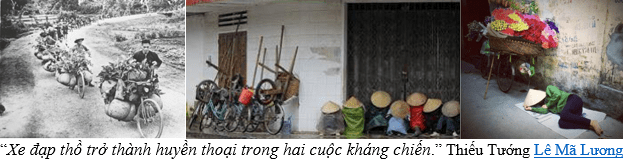 “Trong Chiến dịch Điện Biên Phủ, bộ đội và dân công của ta sử dụng gần 21.000 chiếc xe đạp thồ, được gọi với tên là “binh chủng xe đạp thồ” hoạt động trên suốt chiều dài gần 1.500km. Lực lượng xe đạp thồ được biên chế thành từng đoàn theo địa phương, mỗi đoàn có nhiều trung đội, mỗi trung đội từ 30 đến 40 xe, chia thành các nhóm khoảng 5 xe để hỗ trợ nhau khi qua đèo, vượt dốc cao.