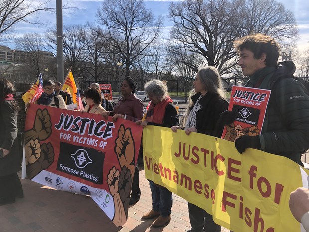 Hôm 12 tháng 1, 2024, các thành viên của Liên minh ngăn chặn Formosa (The Stop Formosa Plastics,) Liên minh Giám sát Quốc tế Formosa Plastics (International Monitor Formosa Plastics Alliance) và Rise St. James (một tổ chức phi chính phủ ở Louisiana, Hoa Kỳ) đã tổ chức một cuộc biểu tình trước Nhà Trắng để tố cáo công ty Formosa Plastics vi phạm nghiêm trọng “công lý môi trường”, bao gồm xả thải phá hoại môi trường, gây ra những tổn hại về sức khỏe và nhân quyền tại Hà Tĩnh (Việt Nam), Texas và Louisiana (Hoa Kỳ.) Formosa Plastics là công ty có trụ sở chính tại Cao Hùng, Đài Loan và có các chi nhánh tại Vũng Áng (Hà Tĩnh, Việt Nam), tại Point Comfort (bang Texas), Baton Rouge (bang Louisiana) và Livingston (bang) New Jersey của Hoa Kỳ.