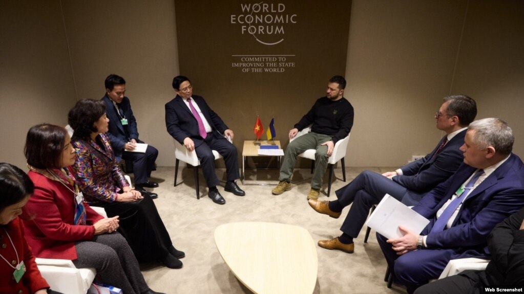 Thủ tướng Việt Nam Phạm Minh Chính và Tổng thống Ukraine Volodymyr Zelenskyy vừa có cuộc gặp ngắn bên lề Diễn đàn Kinh tế Thế giới (WEF) hôm 16/1 tại Davos, Thụy Sỹ, Văn phòng Tổng thống Ukraine cho biết.