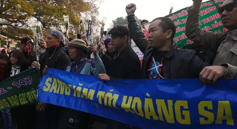 Các nhà hoạt động hô vang khẩu hiệu chống Trung Quốc trong một cuộc biểu tình ở Hà Nội vào ngày 14 tháng 3 năm 2016 – GETTY IMAGES
