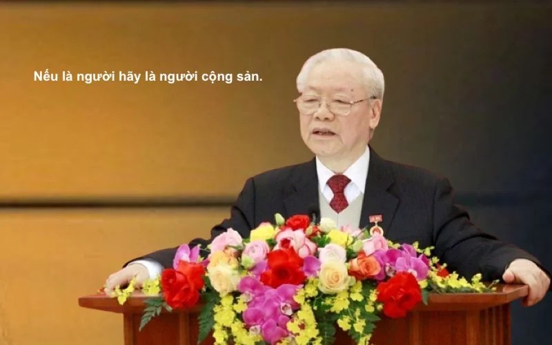 Hồi đầu năm 2023, trong bài phát biểu tại trụ sở trung ương đảng, đảng ủy văn phòng trung ương đảng nhân lễ nhận huy hiệu 55 năm tuổi đảng, Tổng bí thư Trọng huênh hoang, kiêu ngạo nói “nếu là người hãy là người cộng sản”. Ông Trọng xem tất cả những ai, người không phải cộng sản, không phải là người.(1)