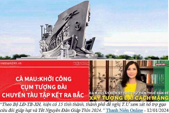 Đầu năm mới, cơ quan ngôn luận của Thông Tấn Xã Việt Nam (trang Viet Nam Plus) hân hoan cho biết: “Ngày 2/1/2024, tại khu vực bờ Nam sông Ông Đốc (Khóm 6B, thị trấn Sông Đốc, huyện Trần Văn Thời, tỉnh Cà Mau) Ủy ban Nhân dân tỉnh tổ chức Lễ khởi công xây dựng cụm Tượng đài kỷ niệm Chuyến tàu tập kết ra Bắc năm 1954”.