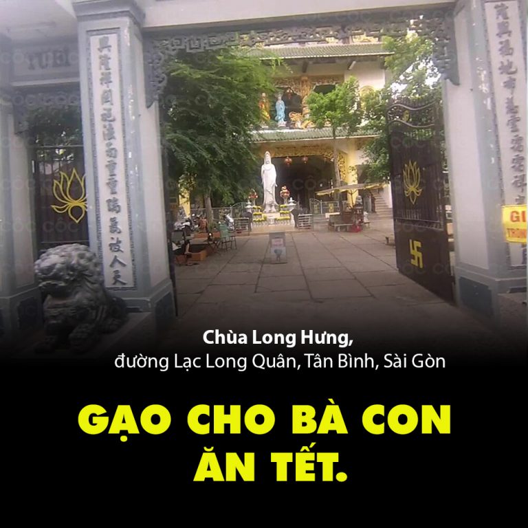 Lúc đó mới thấy, có mấy người dáng vẻ nghèo khổ, cầm cái phiếu đứng ngay chỗ để hòm công đức. Cậu thanh niên, lúc vô thấy giữ xe ở sân, chạy lại, cầm phiếu, rồi ghi gì đó vô cuốn sổ. Xong cậu bước sang cách đó vài mét, có một đống các bao nho nhỏ, xách cho mỗi người 2 bao. Tôi mới hỏi, đó là cái gì vậy? Cậu ấy trả lời, rằng đó là gạo cho bà con ăn Tết. Có lẽ mỗi bao khoảng 5kg.