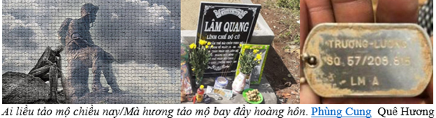 - Từ Đức Minh: “Người Cộng Sản không cần biết thế nào là nghĩa tử, nghĩa tận. Họ chủ động giáo dục cho đám con trẻ gọi mộ người lính Việt Nam Cộng Hòa là ‘mả ngụy’, ‘mả giặc’. Người ta canh tác rau trên mộ, tưới nước phân dơ bẩn, thả trâu bò lội giẫm đạp lên mộ. Khốn nạn hơn nữa , họ cho người đào giữa ngôi mộ và trồng lên đó những cây to…”