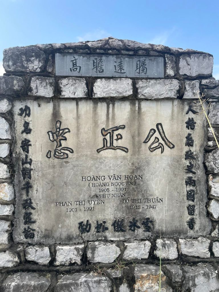 Phần lưu lại được Bắc Kinh đặt trang trọng ở Bát Bảo Sơn, phần đưa về Việt Nam an táng tại quê nhà. Bia mộ ghi ba chữ, “Trung Chính Công” [bậc trung chính]. Hai bên có đôi câu đối: “Công danh kí sơn hà, thiên thu định luận/ Nhân cách tồn chính sử, lưỡng quốc lưu hương”. Trên đầu bia có dòng chữ “Cao chiêm viễn chúc” [đứng trên cao để nhìn xa]. Dưới ghi ”Kính tùng ngạo băng tuyết” [Cây tùng (cứng cỏi) coi thường băng tuyết. Câu này trích từ một bài thơ chữ Hán của Hoàng Văn Hoan với hai câu đầu, “Kính tùng ngạo băng tuyết/ Hàn đống độc thư nghiên” [Cây tùng cứng cỏi ngạo băng tuyết/ Trong sương giá vẫn một mình tươi xanh].