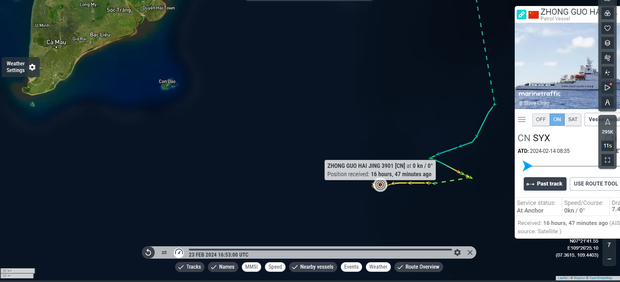Trong khi đó, hôm 20 tháng 2, 2024, tàu Hải cảnh Trung Quốc mang số hiệu CCG 5901 (Zhong Guo Hai Jing 3901) đã bật tín hiệu AIS khi tuần tra khu vực bãi Tư Chính. Theo ghi nhận của RFA từ dữ liệu Marine Traffic, đây là lần thứ hai kể từ đầu năm 2024, Trung Quốc cho tàu hải cảnh xâm nhập, tuần tra trong vùng đặc quyền kinh tế của Việt Nam. Lần thứ nhất là ngày 4 tháng 2, 2024, tàu hải cảnh mang số hiệu CCG 4201 đi tuần tra trong vùng đặc quyền kinh tế Việt Nam, cách đảo Lý Sơn khoảng 120 hải lý (hôm 4/2/2024) và 150 hải lý (hôm 5/2/2024.)