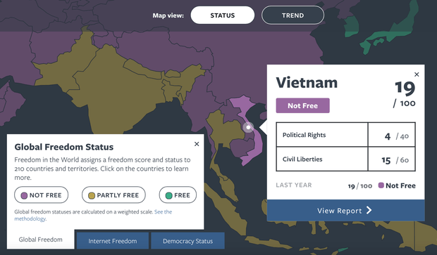 Báo cáo chi tiết về tình hình tự do của từng quốc gia, trong đó có Việt Nam sẽ được Freedom House công bố vào tuần tới.