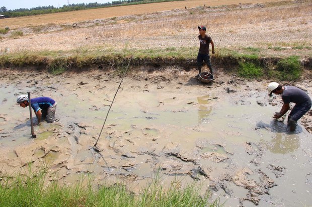 Vào tháng hai vừa qua, khu vực Đồng bằng Sông Cửu Long chịu đợt nắng nóng kéo dài bất thường dẫn đến hạn hán và nước xuống mức thấp trong các kênh rạch.