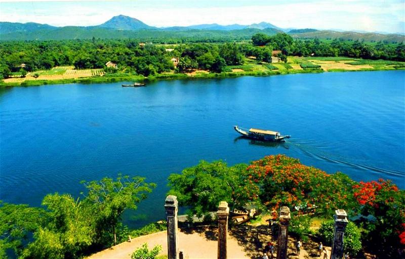 Nếu ta dừng lại ở vài bậc chót khi lên Chùa Thiên Mụ mà ngắm cảnh hoàng hôn rực rỡ trên dòng Sông Hương thì sẽ thấy lòng mình lắng xuống, rồi như bị cuốn vào với tiếng chuông chùa, ngân vang vào không trung: “Ai đi xa Huế làm sao quên được Sông Hương?”